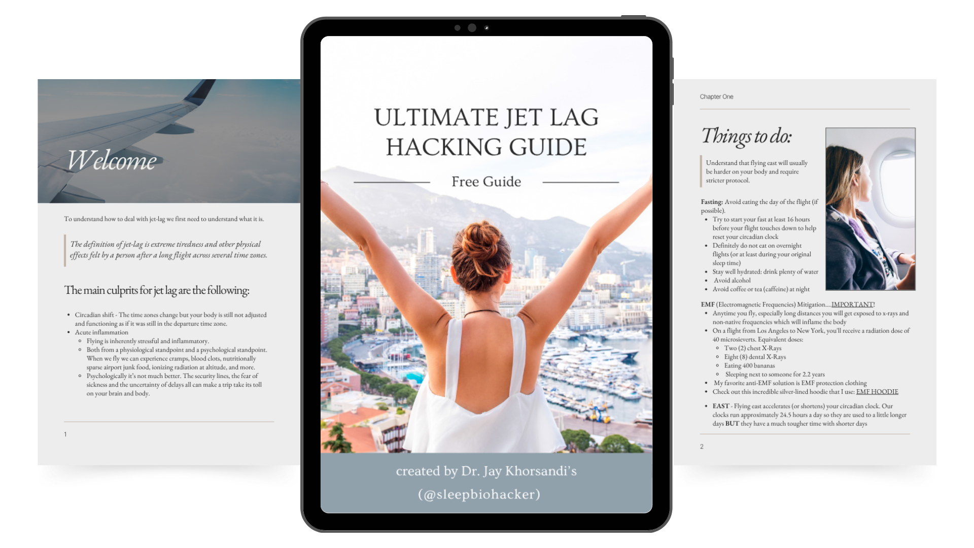 It’s a free, expert-created digital guide by Dr. Jay Khorsandi that gives you science-backed, step-by-step strategies to reduce jet lag and arrive feeling focused, energized, and in sync with your destination.
